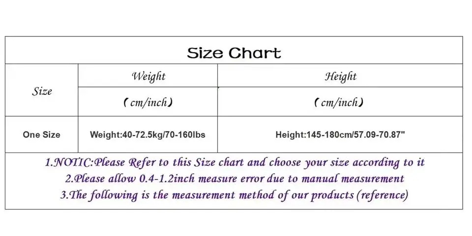 Size:one size suitable for wearing up to 70KG.